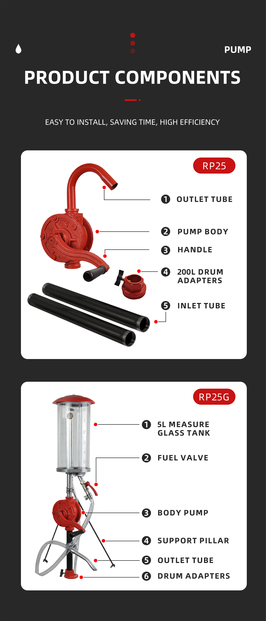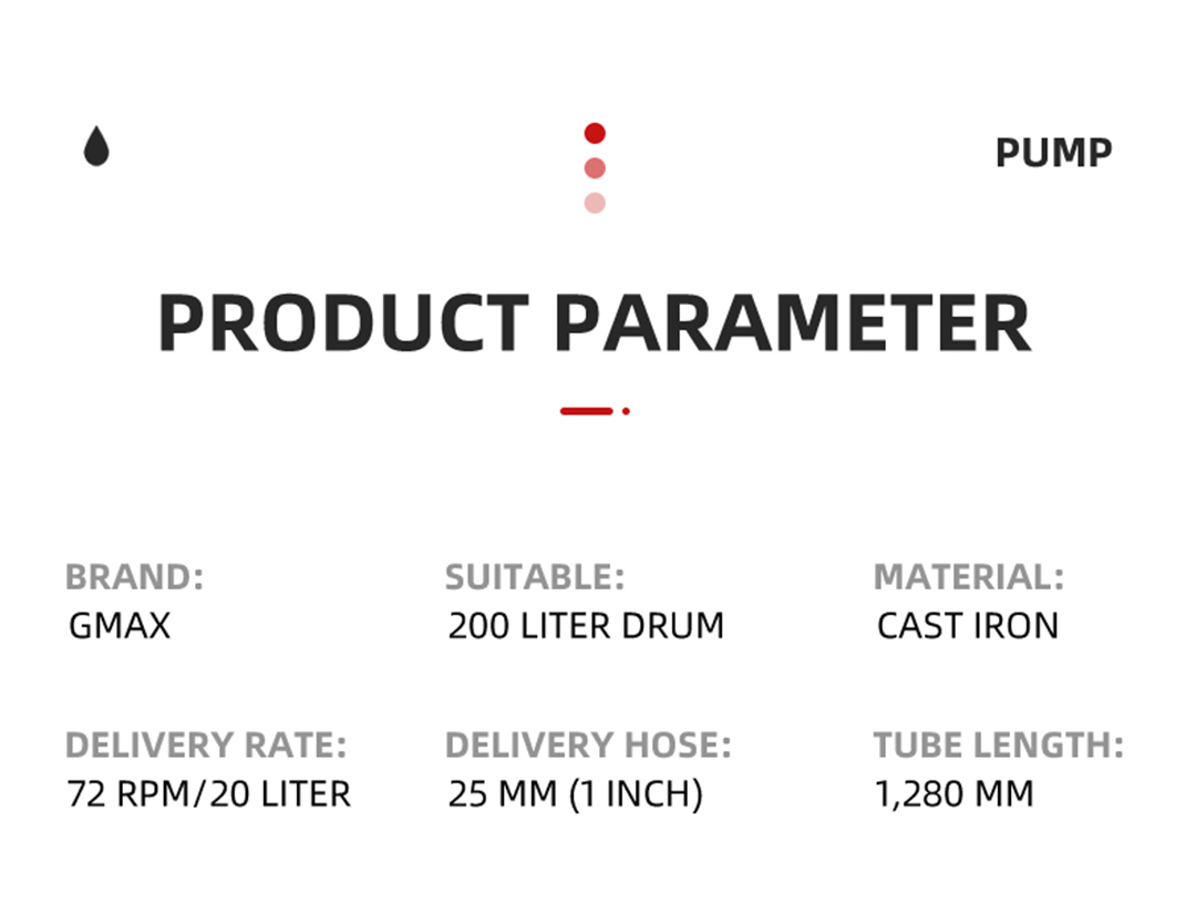 Suction Pipe: 128 cm steel pipe (Compatible with 200-liter drums)